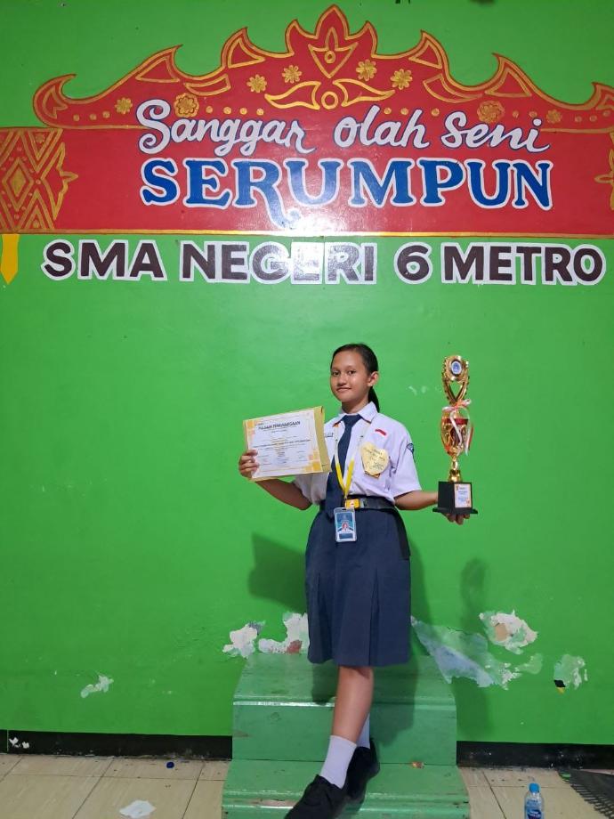Juara 2 Festival Lomba Seni dan Sastra Siswa Nasional (FLS3N) Cabang Lomba Menyanyi Solo Tingkat Kota Metro Tahun 2025.
